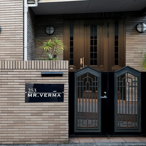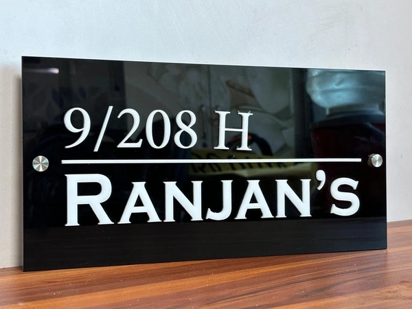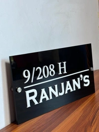 Customize Black Name Plate for Flat/Home Lazer Cut White Acrylic Letter Size(12x6) inch Horizontal Line.