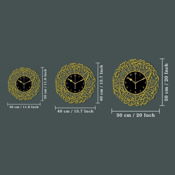 Golden Islamic Wall Clock with Arabic Calligraphy – 12 Inch Elegant Black & Gold Decorative Timepiece for Home & Office (Golden & Black (12x12 Inch))