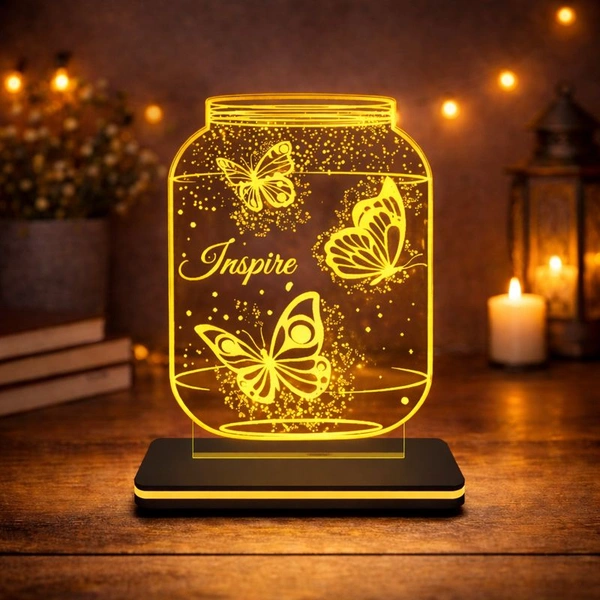 Inspire Butterfly LED Table Lamp | Acrylic Jar Design Night Lamp | Warm White Light | AC Powered | 6 x 5 Inch Approx