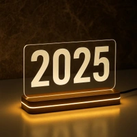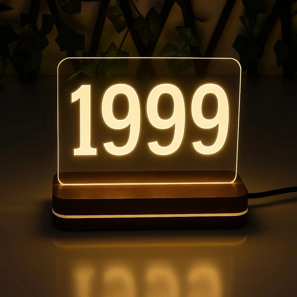 Personalized Acrylic LED Year Lamp with Wooden Base – Custom Engraved Table Lamp